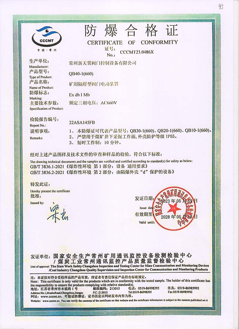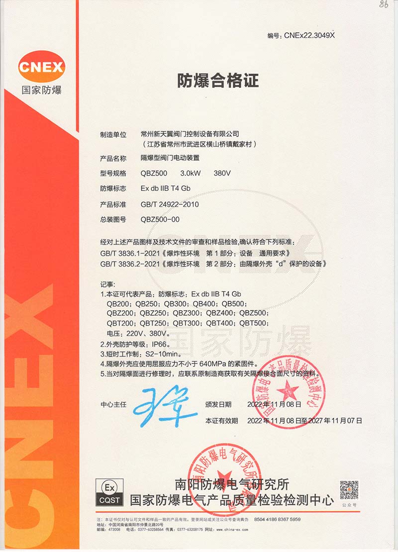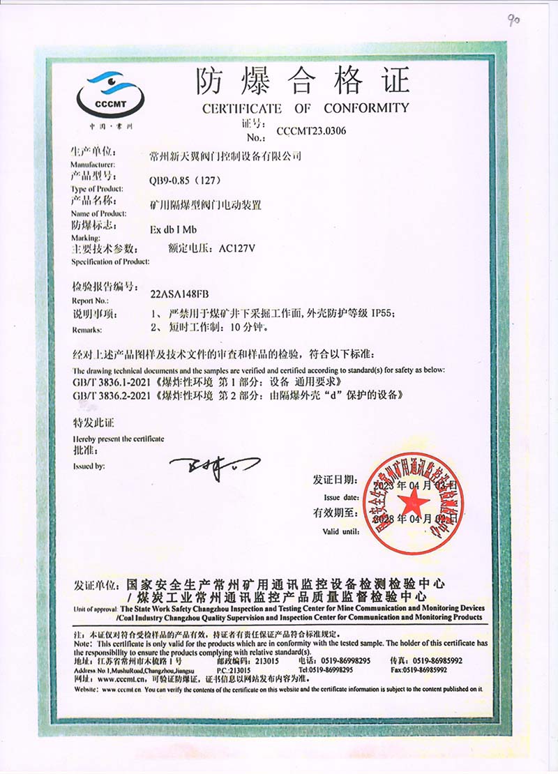 隔爆型QB QBZ QBT 220380中國國家強制性產品認證證書107.1