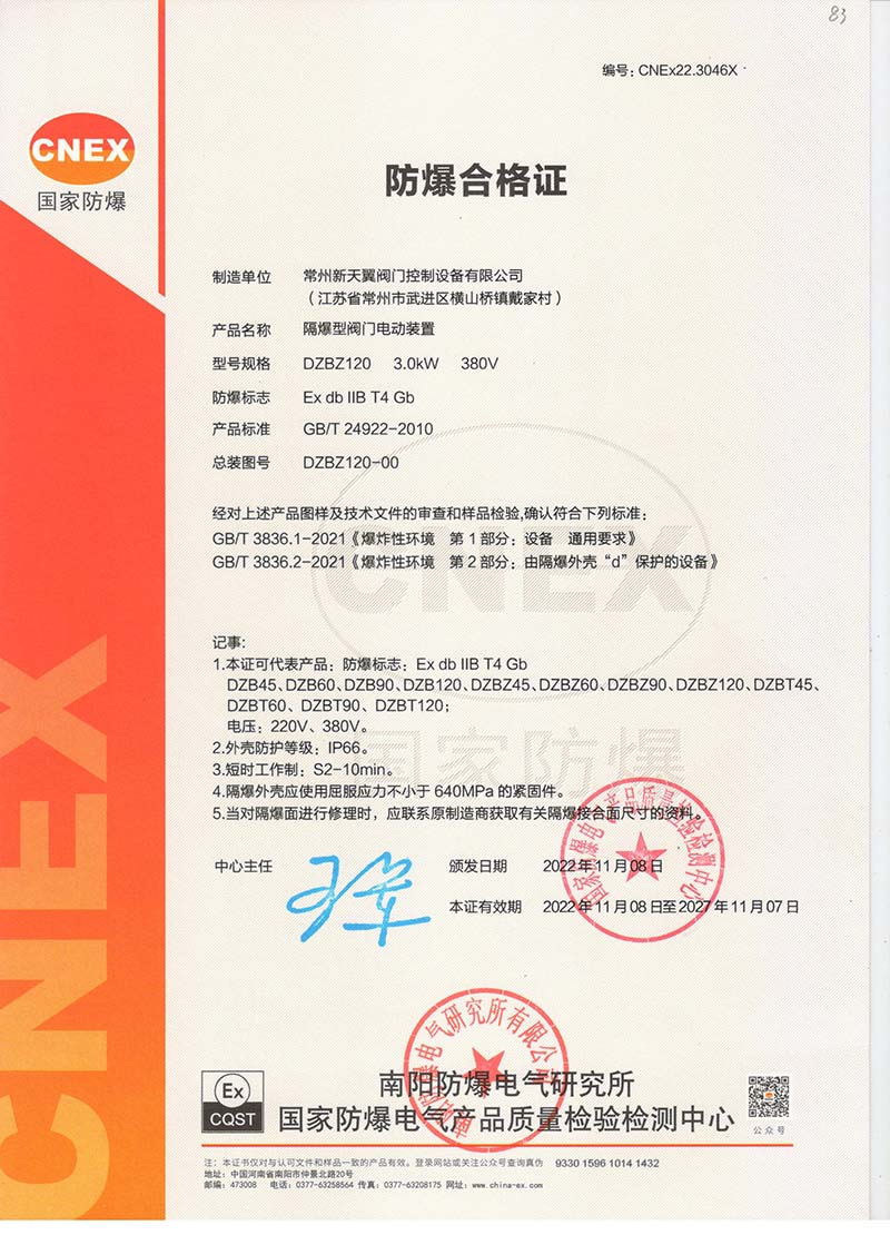 防爆Z10B Z10FB國家強制性產品認證CT4證書109.1