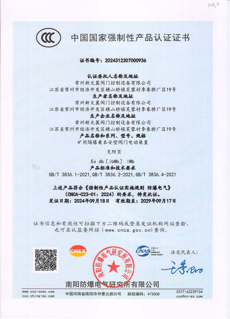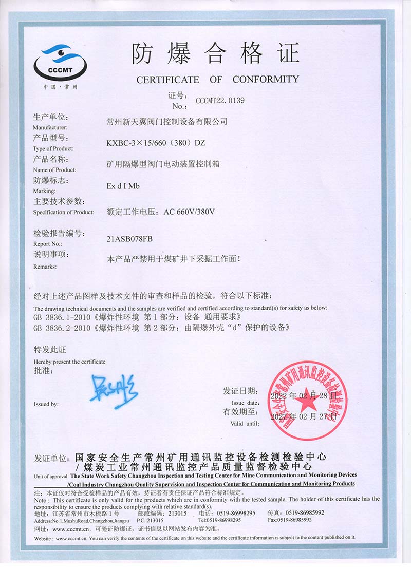 隔爆控制箱 中國國家強制性產品認證證書111.2